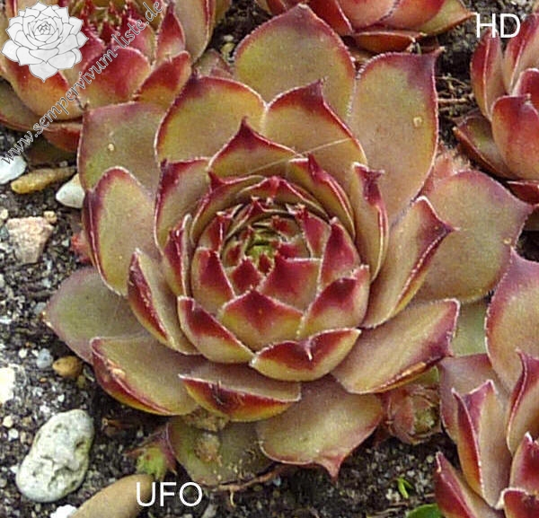 Hier haben wir mal eine Züchtung aus Österreich. S 'Ufo' formt sehr große Rosetten in unterschiedlichen Rosatönen. Später verfärben sich die äußeren Blätter nach und nach in gelbliches Grün.