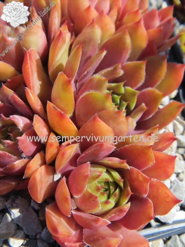 Eine ältere Kreuzung, die mit ihren leuchtenden Farben besonders im Sommer auffällt. Die roten Blattspitzen runden das Gesamtbild gut ab. Die mittelgroßen Rosetten sind wüchsig.