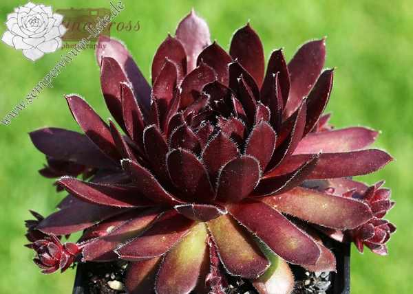 Eine samtene Erscheinung in weinroten und rosafarbenen bis violetten Tönen. Die englische Sorte besitzt einen kompakten Wuchs. Allerdings blühen die Rosetten gern bereits im zweiten Jahr, wie gut dass sie mindestens zwei bis drei Töchter hinterlassen.