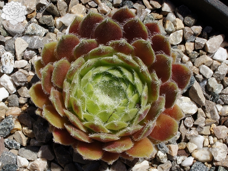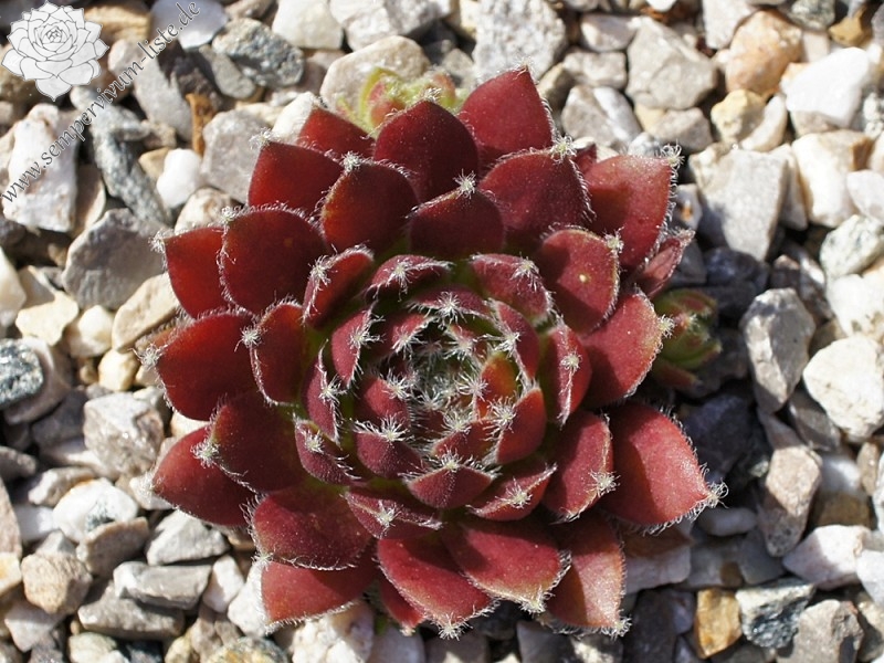 Especially nice in spring as the new growth starts and the fresh red leaves appear to sit on top of the older green ones. The summer colour is a good red and the tufts of silver hairs at the leaf tips are like little sparklers. The pink flowers are attractive, when they appear. Small, compact rosettes.