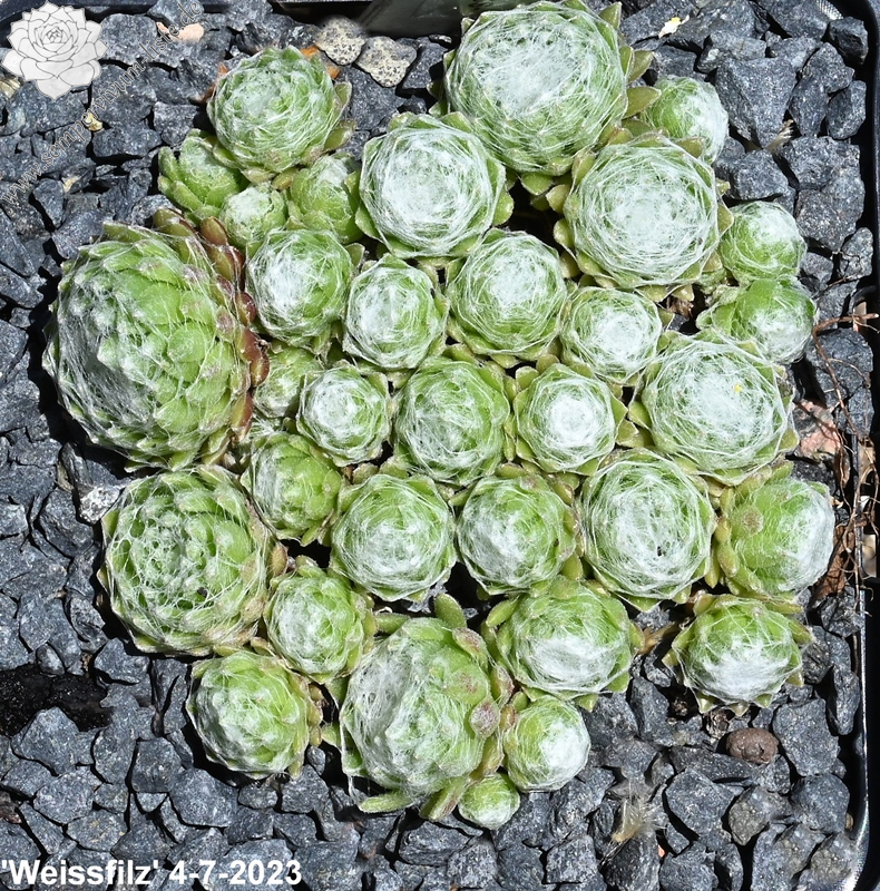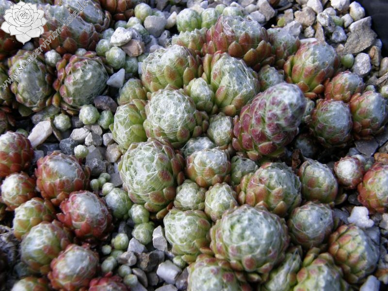 Kleine grüne Sorte, mit starker Bespinnung, die dichte Polster bildet. Sehr wüchsige Sorte, die auffallend flache Polster bildet.