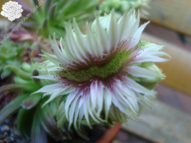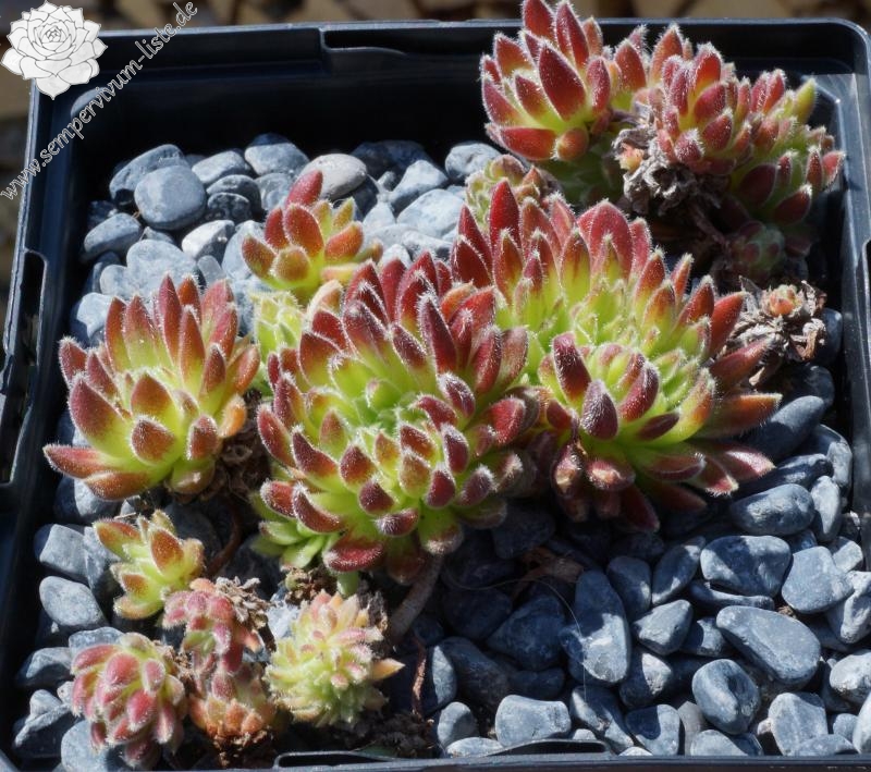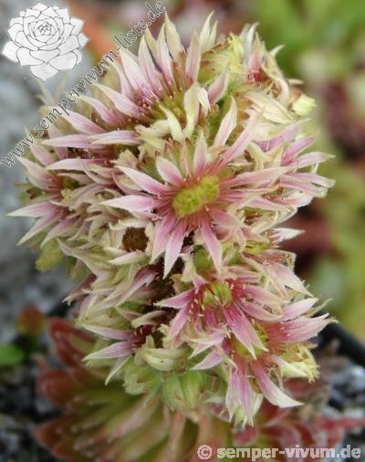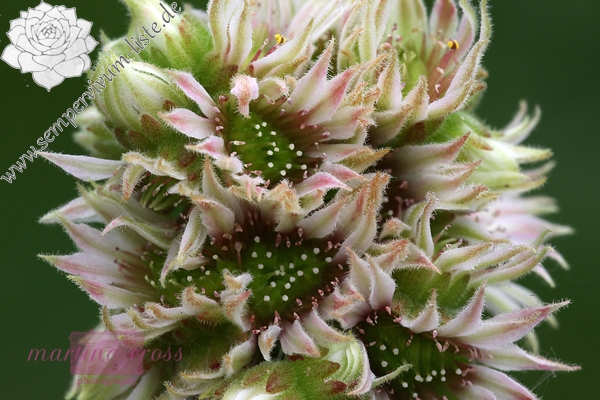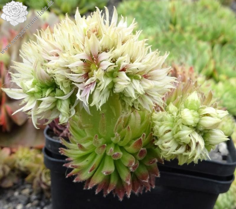 Wahrlich ungewöhnliche Rosetten in samtigem Grün formt diese Mutation von 'Cleveland Morgan'. Die Blütenstängel sind meist cristaatförmig, wie auch der Flor der amerikanischen Züchtung. Sie erhielt Anfang der 80er Jahre die höchste Auszeichnung bei den Semperviven – einen "Award of Merit". Eine Sammlerpflanze.