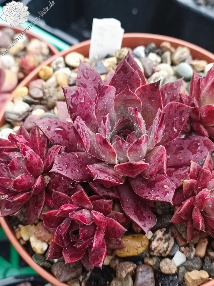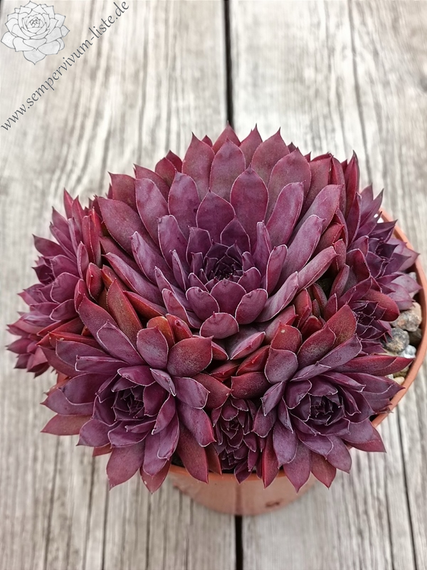 Die Rosetten erreichen einen Durchmesser von 10–12 cm und sind von beständiger burgunderroter Farbe. Im Frühjahr ist das Zentrum der Rosette heller als die Hauptfarbe. Die Abstammung ist unbekannt. Aussaat: 2023. Selektion: Marina Timoshina.