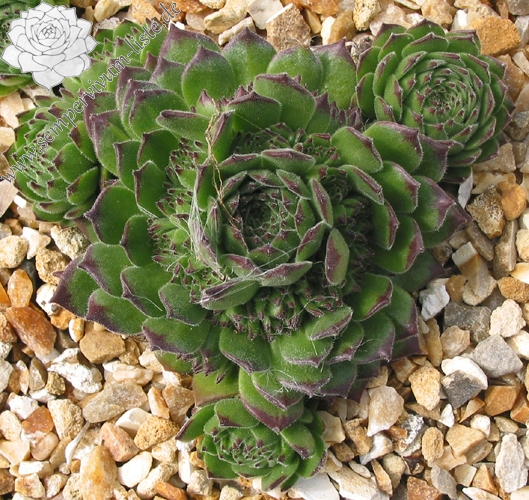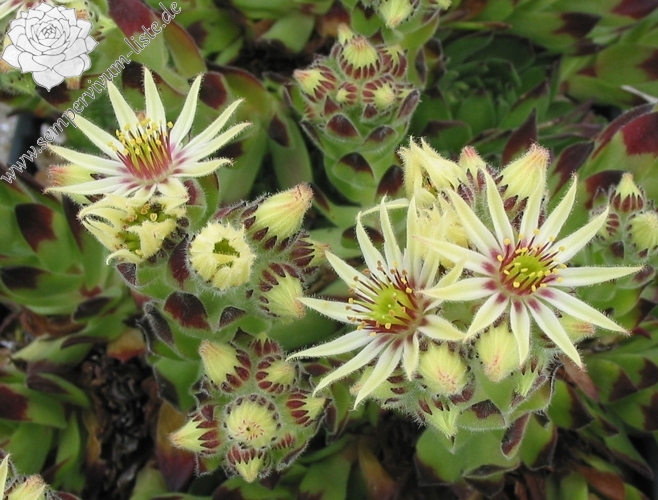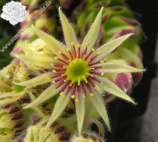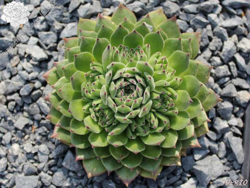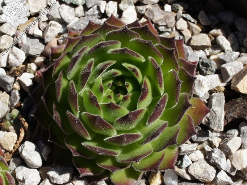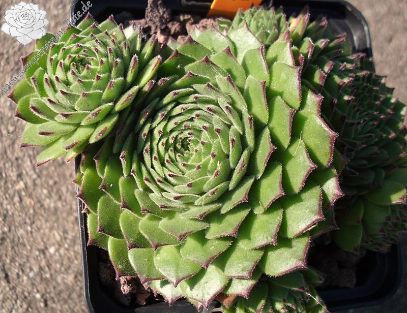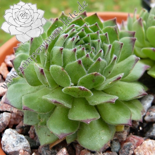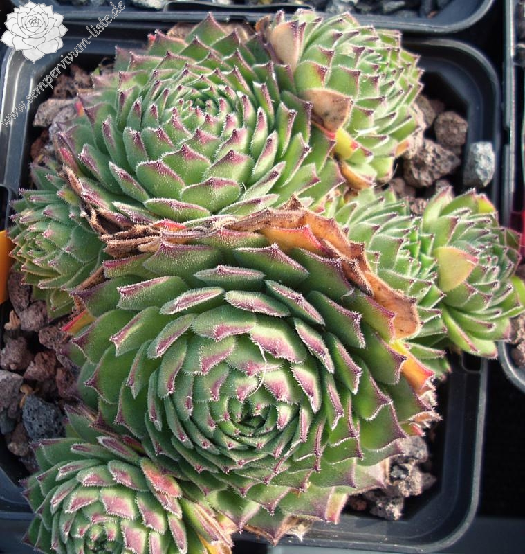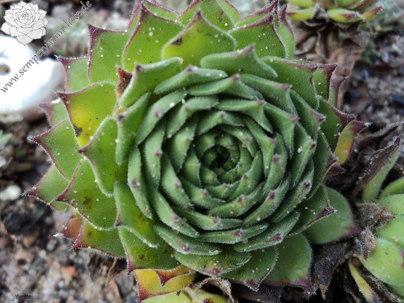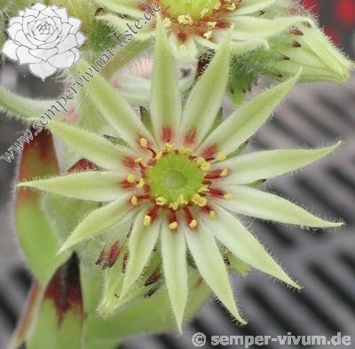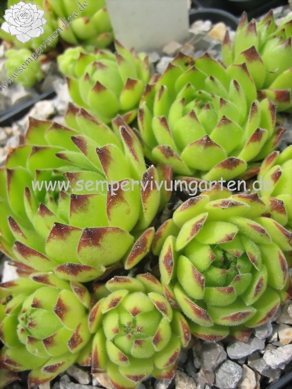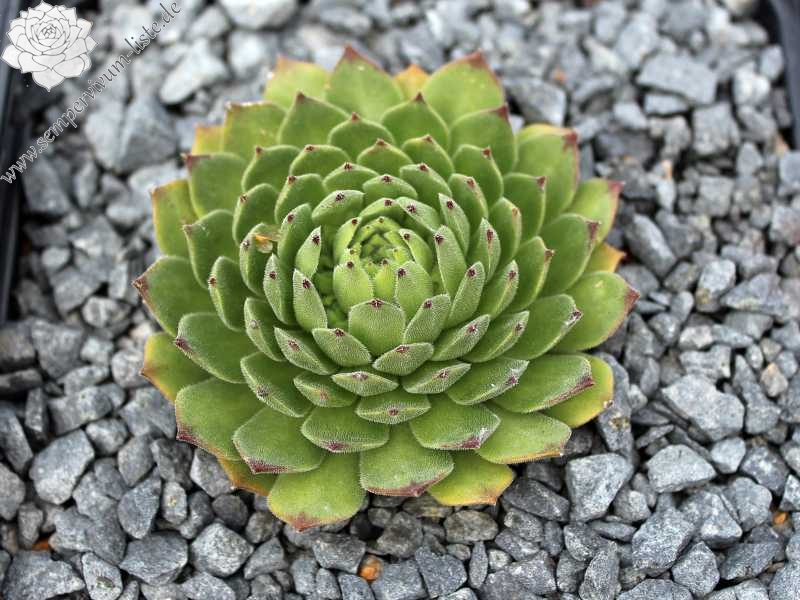 Schöne größere grüne Rosetten, mit kleinen rot gefärbten Blattenden. Ein sehr wüchsiger Typ, der Sempervivum grandiflora–Blut besitzt und daher auch gelbe Blüten zeigt!